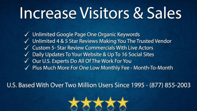 If you’re searching for a U.S. based Internet marketing company to help you find new customers, you just found it. Let our experts help you like we have so many others. Founded in 1995, our team has 24+ years of experience where we've helped over TWO MILLION BUSINESSES fuel their growth and capture market share.